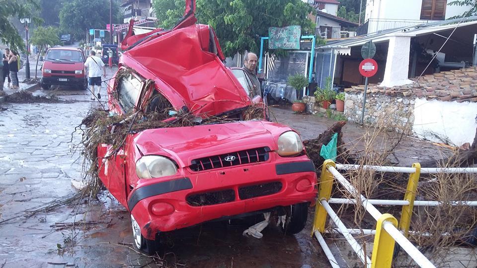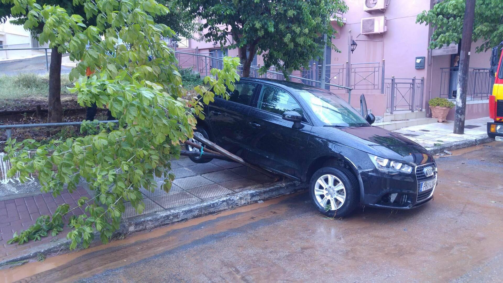 Από την κακοκαιρία έπεσαν δέντρα, παρασύρθηκαν είδη εξοπλισμού, ομπρέλες, καρέκλες, ακόμα και παγκάκια. Μεγάλοι κορμοί διέλυσαν μάντρες και έσπασαν τοίχους προκαλώντας αρκετά μεγάλες ζημιές σε σπίτια των κατοίκων.