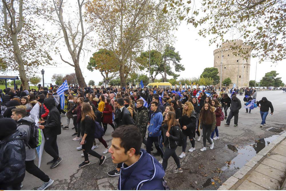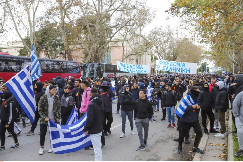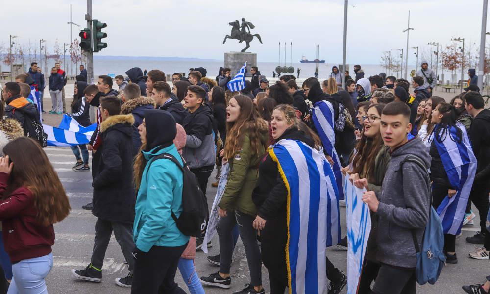 Συνολικά στη Θεσσαλονίκη εκτιμάται ότι ξεπερνούν τα 100 σε αριθμό τα σχολεία που βρίσκονται υπό κατάληψη με τους μαθητές να έχουν αναρτήσει στα κάγκελα ελληνικές σημαίες και πανό με συνθήματα όπως «Η Μακεδονία είναι ελληνική», ενώ αρκετοί σε ανακοινώσεις τους ξεκαθαρίζουν ότι «η δράση τους σε καμία περίπτωση, δεν φέρει φασιστικό ή εθνικιστικό χαρακτήρα».