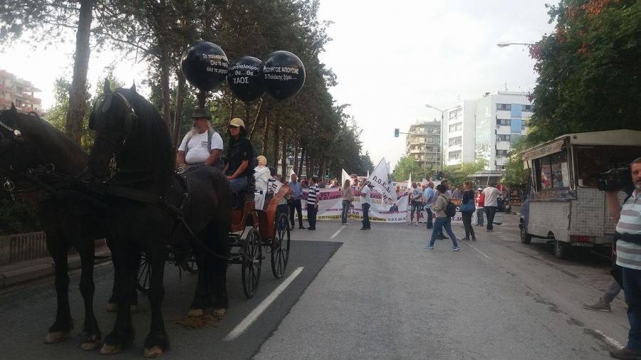 Ιδιαίτερη εντύπωση προκάλεσαν τα… άλογα που επιστρατεύτηκαν για τη διαμαρτυρία, αλλά και τα μπαλόνια με τα γεμάτα φαντασία συνθήματα. Χαρακτηριστικά, τρία από αυτά ανέφεραν: “Μαυρογιαλούρος, Θα, θα, θα…”, “Το παλικάρι της φακής. Όλα τα σφάζω όλα τα μαχαιρώνω” και “Υπουργός απουσίας, ο Πολάκης ξέρει”. Το κάρο συμβολίζει σύμφωνα με τους γιατρούς, τις μεσαιωνικές συνθήκες εργασίες. Οι εργαζόμενοι μεταξύ άλλων κρατάνε πλακάτ με σύριγγα και όρους και φωνάζουν συνθήματα “Το Ταμείον είναι μείον-γάζες, σύριγγες, χαρτί υγείας”.