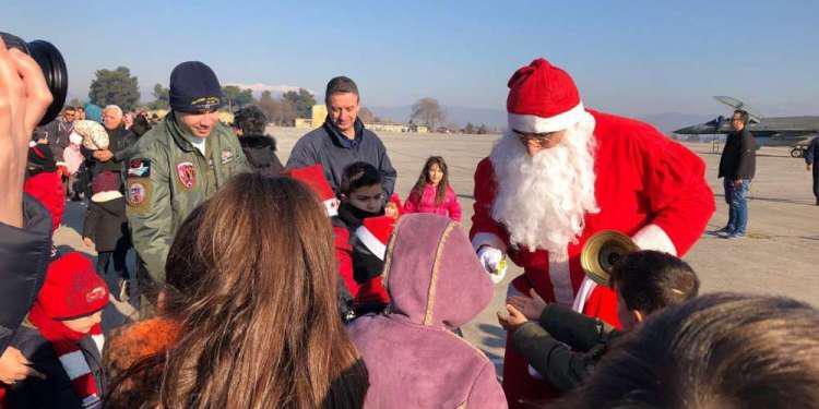 Ο Άγιος μοίρασε δώρα σε παιδιά των κοινωνικών δομών του δήμου Λάρισας, τα οποία παρακολούθησαν με δέος την προσγείωσή του στην πίστα.
