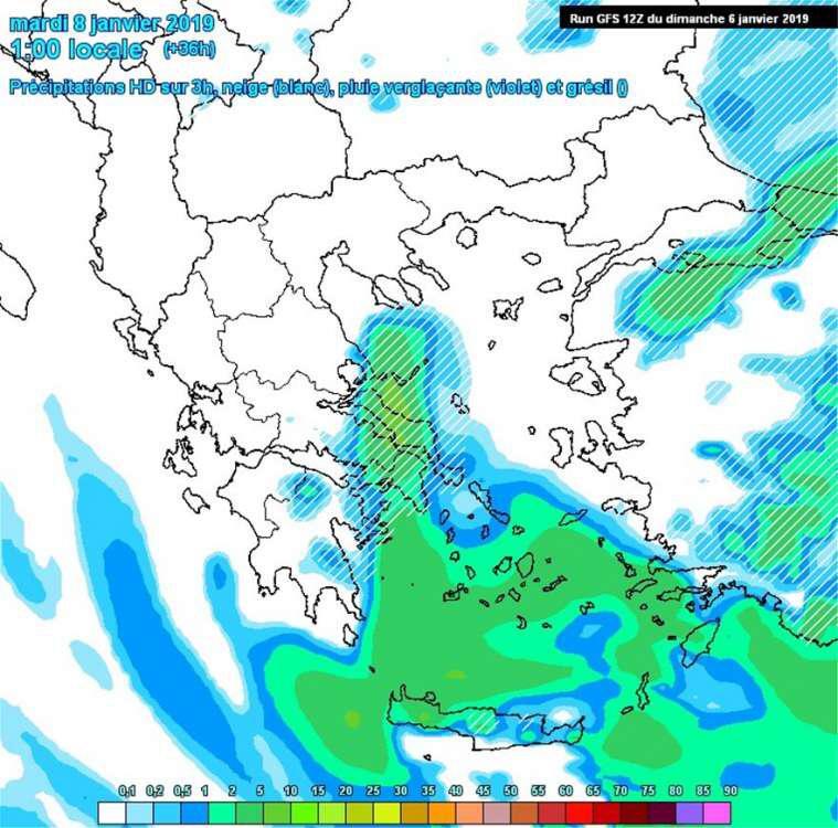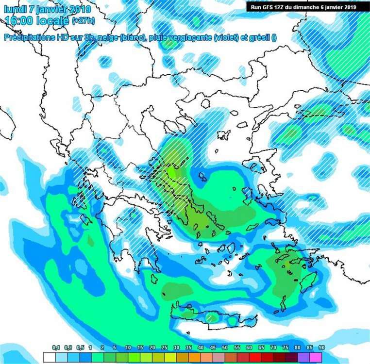 Πού θα χιονίζει αύριο από τις 16:00 και στη συνέχεια ώρα 19:00, 22:00, 01:00 και 04:00 τα ξημερώματα της Τρίτης.