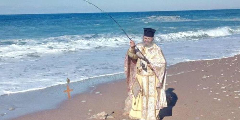 Οπως και πέρυσι, έτσι και φέτος δεν βρέθηκε κανείς γενναίος να βουτήξει στα κρύα νερά, οπότε ο ιερέας έριξε το σταυρό με καλάμι ψαρέματος, και τον ανέσυρε με τη βοήθεια της πετονιάς μετά τον αγιασμό των υδάτων στα Θεοφάνια.