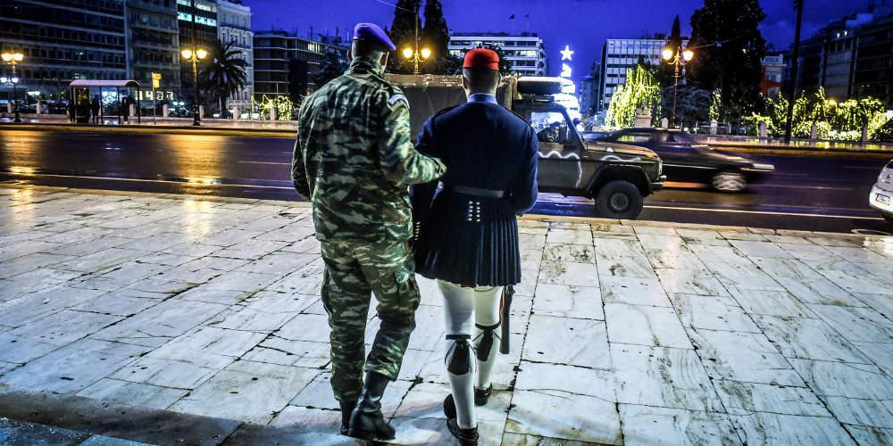 Όπως φαίνεται στις φωτογραφίες, οι Εύζωνες στέκονταν μέσα στο φυλάκιο, ενώ η αλλαγή έγινε με μεγάλη προσοχή και με την βοήθεια του ειδικού οχήματος.