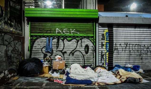 Ο φωτογραφικός φακός της Eurokinissi αποτύπωσε εν μέσω κακοκαιρίας τις απεγνωσμένες προσπάθειες των αστέγων να προφυλαχτούν από το κρύο.