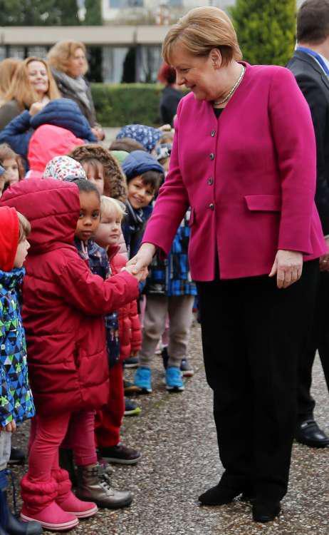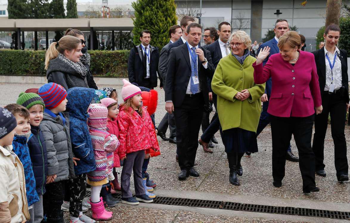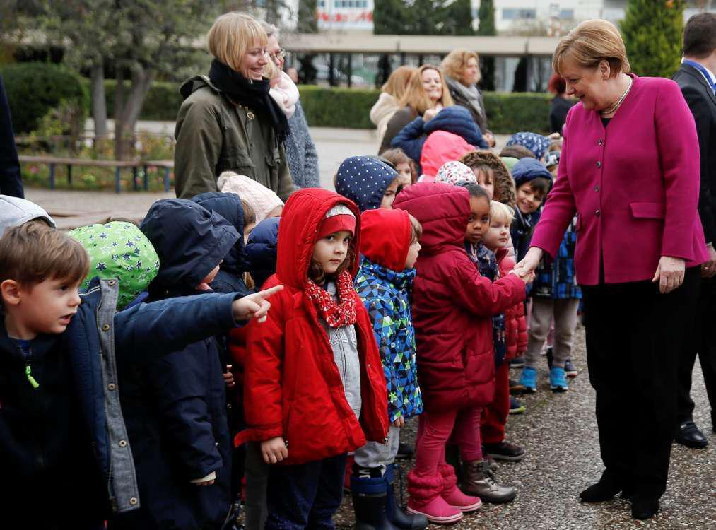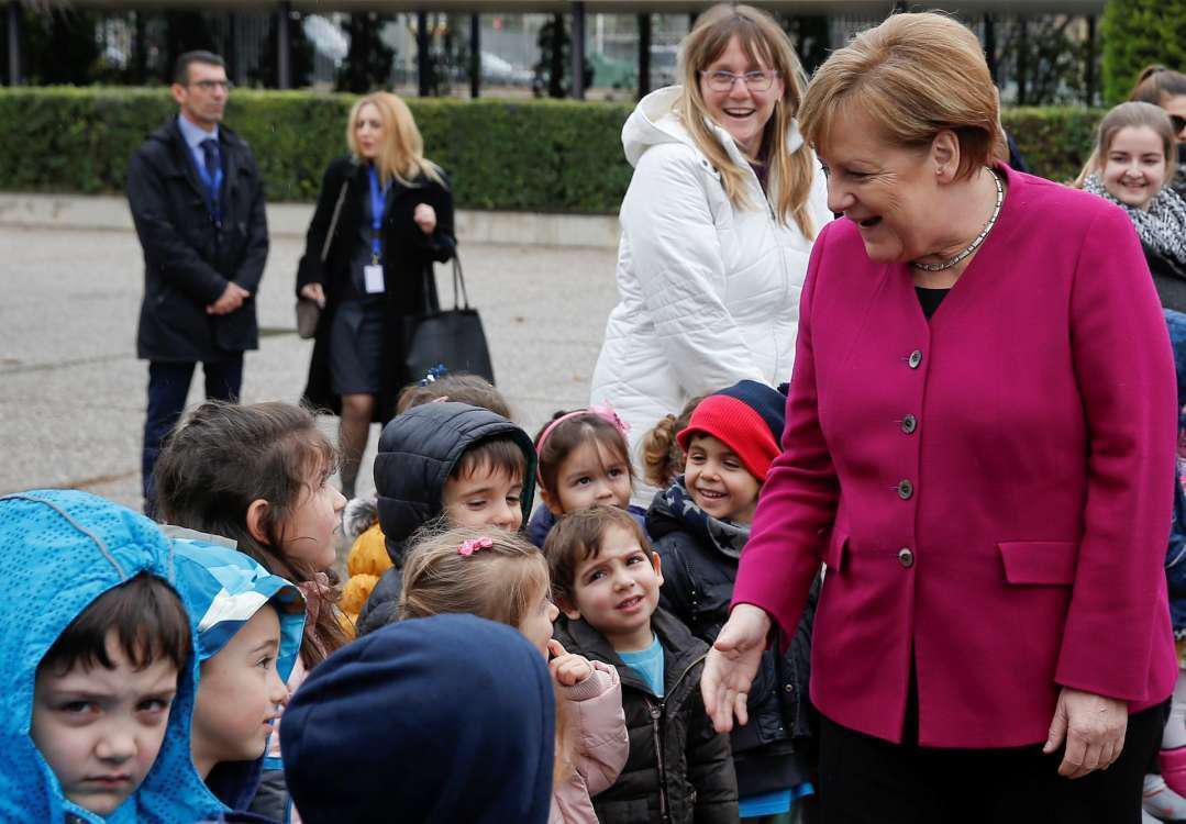 Έκει, την υποδέχθηκαν οι μαθητές. Στις 14:00 θα συναντηθεί με τον αρχηγό της Νέας Δημοκρατίας Κυριάκο Μητσοτάκη, στην πρεσβευτική κατοικία της Γερμανίας στο Χαλάνδρι.