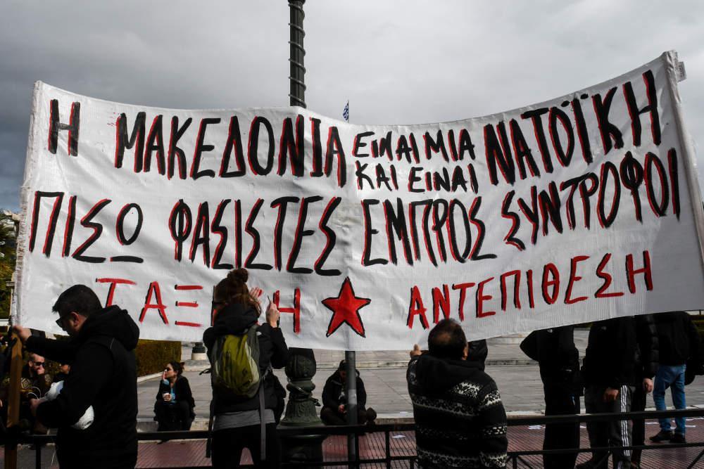 Οι προσερχόμενοι στη συγκέντρωση των Προπυλαίων, φώναξαν συνθήματα όπως «η εθνική ενότητα είναι μια παγίδα, οι προλετάριοι δεν έχουν πατρίδα», «κόκκινα Βαλκάνια, σοσιαλιστικά χωρίς πολέμους χωρίς αφεντικά».