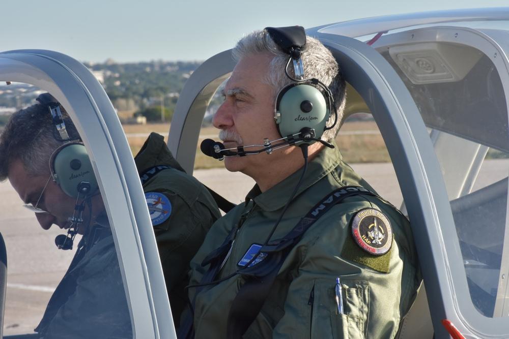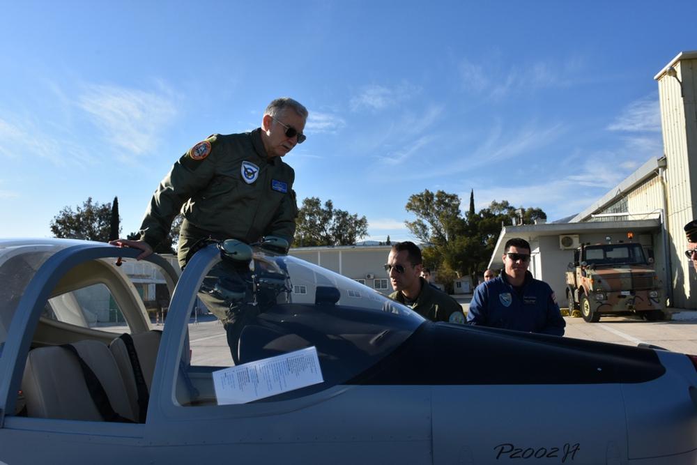 Τον Αρχηγό ΓΕΑ υποδέχθηκαν ο διοικητής της Σχολής Ικάρων, υποπτέραρχος Ιωάννης Γκοντικούλης και ο διοικητής της μοίρας αντισμήναρχος Δημήτριος Πεπόνης.