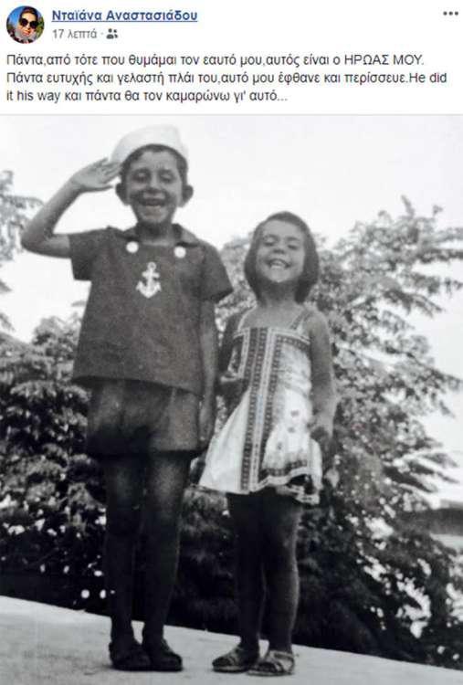 Η Νταϊάν Αναστασιάδου επέλεξε να αποχαιρετίσει τον αδελφό της με μία παιδική τους ανάμνηση με μια της ανάρτηση στον προσωπικό της λογαριασμό στο Facebook,