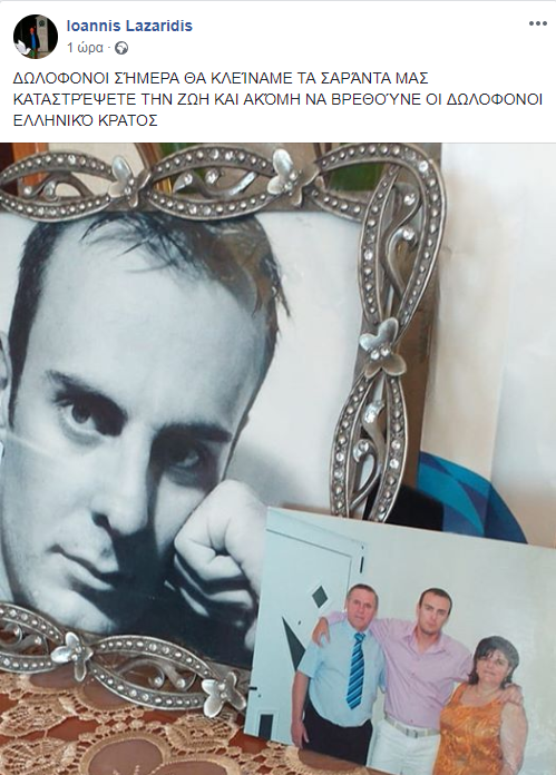 «Δολοφόνοι, σήμερα θα κλείναμε τα σαράντα μας. Καταστρέψατε τη ζωή μας και ακόμη να βρεθούνε οι δολοφόνοι, ελληνικό κράτος».
