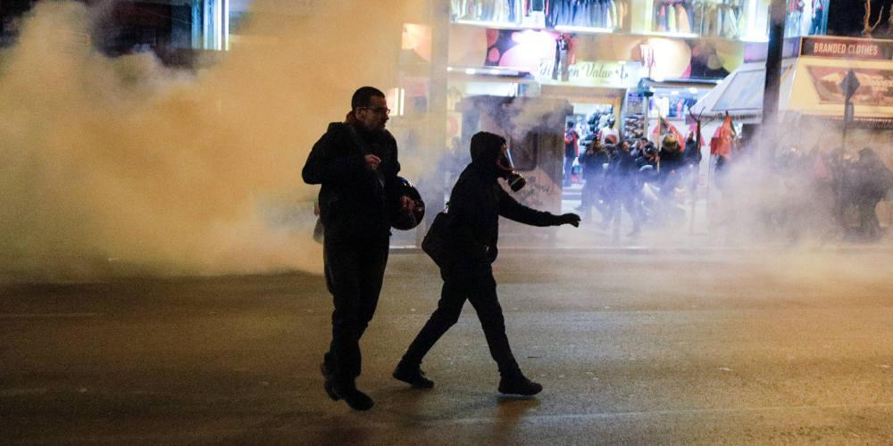 Kατά τη διάρκεια της συγκέντρωσης, ομάδα κουκουλοφόρων επιτέθηκε με βόμβες Μολότοφ στους αστυνομικούς, οι οποίοι απάντησαν με χειροβομβίδες κρότου-λάμψης και δακρυγόνα.