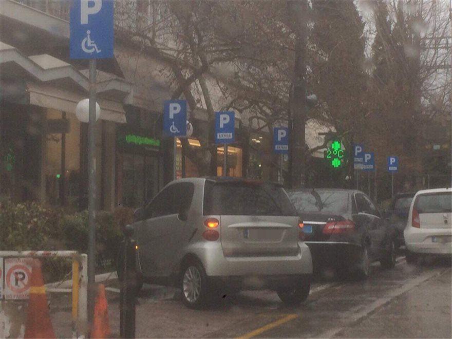 Δεκάδες αυτοκίνητα είναι παρκαρισμένα παντού και οι οδηγοί τους αδιαφορούν για το αν εκεί που έβαλαν το όχημά τους είναι κάποια μπάρα που προβλέπεται για ανάπηρους ή κλείνουν την είσοδο καταστήματος ή εμποδίζουν την διάβαση.