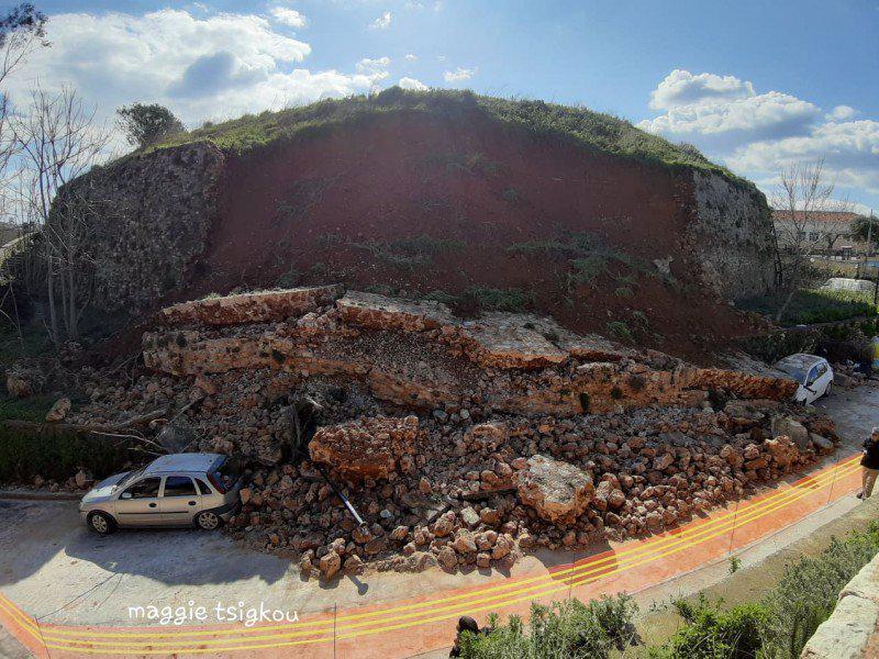 «Είμαι κάτοικος της Παλιάς Πολης, Αυτό το βουνό που βλέπετε είχε ξαναπέσει πριν 20 χρόνια. Έκαναν τότε την κατασκευή που βλέπετε. Για να πέσει όμως μετά από 15 χρονια σίγουρα η κατασκευή δεν ήταν αυτή που έπρεπε. Το θέμα είναι οτι, τότε, όταν έπεσε το βουνό, κάποιοι έκαναν παρέμβαση εκει πάνω, στο λεπιδόχωμα που είχαν βάλει οι παλιοί. Το πάνω μέρος ήταν με λεπιδόχωμα και έφευγε το νερό. Ο δήμος, πιο παλιά, φύτεψε λουλούδια και έγινε αυτό που έγινε. Είχε βγει πρόγραμμα, να γίνει ένα αδιάβροχο πλέγμα, πριν 20 χρόνια, το οποιο θα κρατούσε τα νερά να μην μπαίνουν. Η αρχαιολογία που είχε υποχρέωση να το κάνει, δεν το έκανε. Αν η αρχαιολογία είχε κάνει το αδιάβροχο πλέγμα δεν θα έπεφτε. Και θα χαλάσει και το υπόλοιπο. Το χώμα από μέσα είναι ποτισμένο».