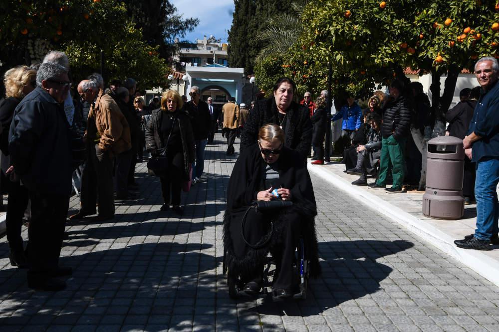 Ο 80χρονος έχασε την πολύχρονη μάχη με τον καρκίνο την Παρασκευή γεμίζοντας θλίψη όχι μόνον την οικογένεια του, αλλά και το ελληνικό κοινό. Η σύγυζός του Μπέτσυ έφθασε από νωρίς στο κοιμητήριο συνοδευόμενη από τα δύο της παιδία, Ραφαέλο και Μαρίζα.