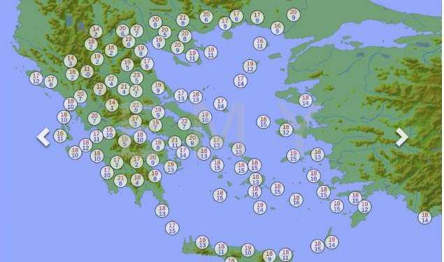 Θερμοκρασία: Από 06 έως 17 βαθμούς Κέλσιου. Στη δυτική Μακεδονία η ελάχιστη κατά τόπους 3-5 βαθμούς χαμηλότερη.