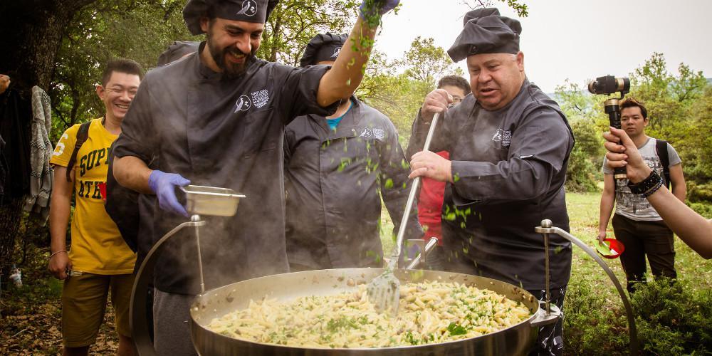Αφού τις εντοπίσουν, προχωρούν στο επόμενο βήμα, που έχουν σχεδιάσει οι διοργανωτές: Οι έμπειροι σεφ τις μετατρέπουν σε μία καταπληκτική τρουφομακαρονάδα, την οποία απολαμβάνουν μέσα στο δάσος οι συμμετέχοντες. Γι’ αυτό και έχουν δημιουργήσει ένα ειδικό μαγειρικό σκεύος, στο οποίο μαγειρεύονται μέχρι 60 (!) μερίδες ταυτόχρονα.