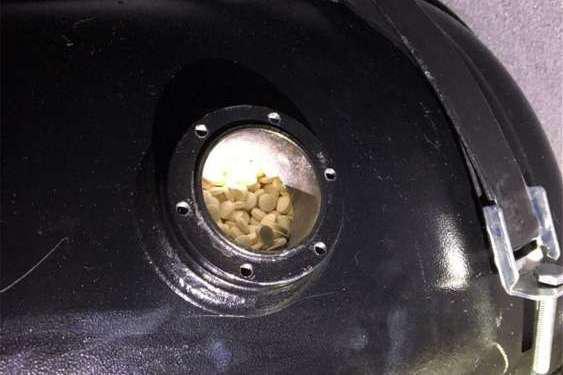 Συγκεκριμένα, σε έλεγχο που διενεργήθηκε στην πύλη του λιμένα εξωτερικού από στελέχη της ομάδας Κ9/Περιφερειακής Ομάδας Δίωξης Ναρκωτικών (Π.Ο.ΔΙ.Ν) με τη συνδρομή στελεχών του Γραφείου Ασφάλειας της οικείας Λιμενικής Αρχής, σε Ι.Χ.Ε. όχημα με οδηγό τον ανωτέρω αλλοδαπό, διαπιστώθηκε η ύπαρξη ναρκωτικής ουσίας εντός φιάλης υγραερίου, η οποία βρισκόταν στο χώρο αποσκευών του οχήματος, με τη μορφή αμφεταμινούχων χαπιών – δισκίων «CAPTAGON» υποκίτρινου χρώματος, η συνολική ποσότητα των οποίων ανέρχεται σε 369.545 δισκία.