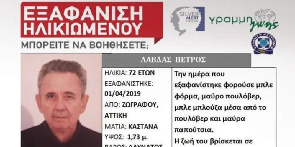 Πρόκειται για τον Πέτρο Λάβδα, ο οποίος εξαφανίστηκε την 1η Απριλίου από του Ζωγράφου.