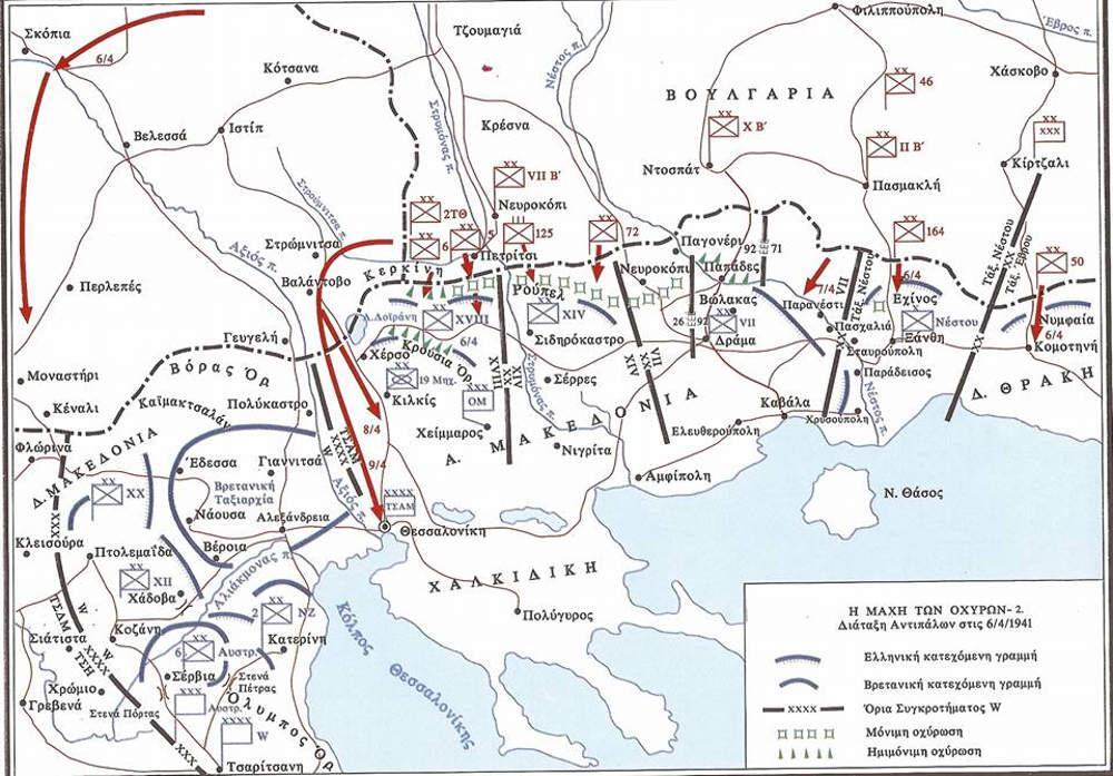 Η γερμανική επίθεση εναντίον της Ελλάδας εκδηλώθηκε στις 05:15 το πρωί της 6ης Απριλίου 1941, νωρίτερα δηλαδή από την 06:00 που αναφερόταν στη γερμανική διακοίνωση που επιδόθηκε στον πρωθυπουργό Αλέξανδρο Κορυζή από τον Γερμανό πρεσβευτή πρίγκιπα Έρμπαχ. Η υλική υπεροχή των Γερμανών, σύμφωνα με στοιχεία του Γενικού Επιτελείου Στρατού (Διεύθυνση Ιστορίας Στρατού), «αντισταθμιζόταν» από την ελληνική οχύρωση, το υψηλότατο ηθικό των Ελλήνων στρατιωτών και την υποτίμηση των παραγόντων αυτών από τους Γερμανούς. Οι μάχες εξελίχθηκαν από ανατολικά προς δυτικά. Στη Θράκη οι δυνάμεις των ταξιαρχιών Έβρου και Νέστου συμπτύχθηκαν με αποτέλεσμα τα οχυρά Νυμφαία και Εχίνος να περικυκλωθούν, ήδη από τις πρώτες ώρες της 6ης Απριλίου. Παρά τον σφοδρό βομβαρδισμό πυροβολικού και αεροπορίας και τις αλλεπάλληλες επιθέσεις του πεζικού, τα οχυρά άντεξαν όλη την ημέρα και ανάγκασαν τους Γερμανούς να τα παρακάμψουν και να κινηθούν νοτιότερα. Δυτικότερα, στο οροπέδιο του Κάτω Νευροκοπίου, η επίθεση της 72ης γερμανικής Μεραρχίας επικεντρώθηκε κυρίου στα δυτικά της τοποθεσίας, όπου υπήρχαν οι κύριες οδεύσεις που οδηγούσαν προς Δράμα και Σέρρες. Την περιοχή υπεράσπιζαν οι δυνάμεις του Συγκροτήματος Καραντάγ της XIV Μεραρχίας και η VII Μεραρχία. Το κύριο βάρος της επίθεσης από τέσσερα γερμανικά τάγματα δέχτηκαν τα οχυρά Λίσσε, Πυραμιδοειδές (που ήλεγχαν την οδό προς Δράμα) και Περιθώρι, Μαλιάγκα (που ήλεγχαν την οδό προς Κάτω Βροντού – Σέρρες). Οι γερμανικές δυνάμεις πεζικού υποστηρίζονταν από πυροβόλα εφόδου και πυροβολικό, αλλά δεν είχαν αεροπορική κάλυψη. Όλες οι κατά μέτωπο επιθέσεις των Γερμανών και οι προσπάθειες διείσδυσης αποκρούστηκαν από τα πυρά των οχυρών και του ελληνικού πυροβολικού.