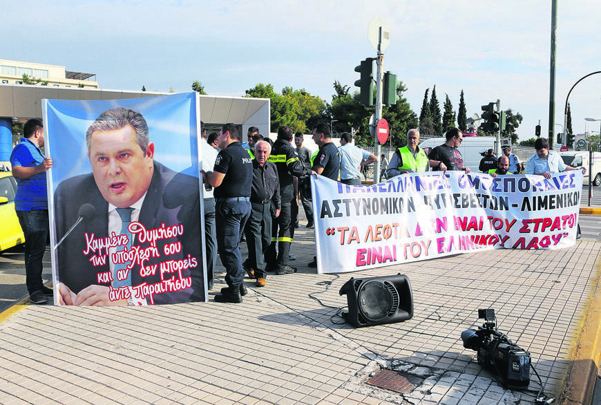 «Δεν θα συμμετέχω σε οποιοδήποτε κυβερνητικό σχήμα, ανεξαρτήτως ποιο κόμμα θα είναι πρώτο, εάν αυτό δεν έχει ως προϋπόθεση την υλοποίηση της απόφασης του ΣτΕ, που δικαιώνει τους ένστολους» είχε πει ο σημερινός υπουργός Εθνικής Αμυνας σε προεκλογικές του δηλώσεις το 2015, κάτι που του θύμισαν ηχητικά χθες το πρωί τα προεδρεία των συνδικαλιστικών σωματείων, με μικροφωνική και μεγάλα πανό, έξω από το Πεντάγωνο. Κυρίαρχα συνθήματα στη συγκέντρωση διαμαρτυρίας ήταν «Τα λεφτά δεν είναι του στρατού, είναι του ελληνικού λαού» και «Καμμένε θυμήσου την υπόσχεσή σου κι αν δεν μπορείς, άντε παραιτήσου».