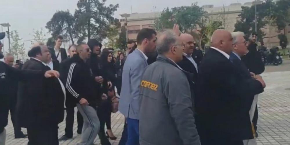 Το πλήθος ξεκίνησε να φωνάζει «προδότες πολιτικοί» και να διώχνει τον υποψήφιο δήμαρχο Θεσσαλονίκης, με αποτέλεσμα αυτός να αποχωρήσει γρήγορα από τον χώρο.