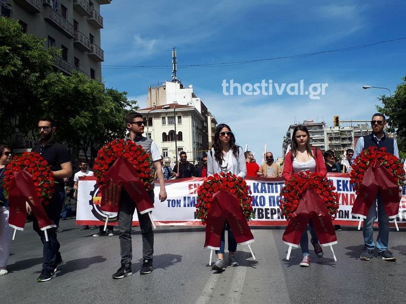 Πορεία για να τιμήσει την Εργατική Πρωτομαγιά πραγματοποίησε στο κέντρο της Θεσσαλονίκης το ΠΑΜΕ.