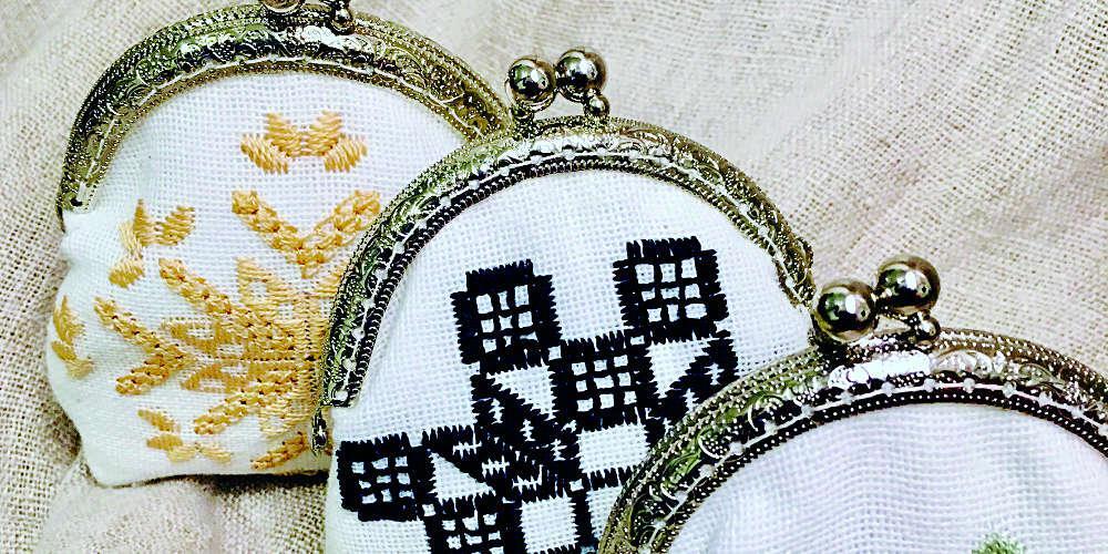 H συλλογή περιλαμβάνει καρφίτσες, μεγάλες και μικρές, με τις οποίες άρχισα να πειραματίζομαι και έγιναν η αφορμή να ξεκινήσω αυτό το δημιουργικό ταξίδι. Αργότερα, προσάρμοσα τα σχέδια σε μενταγιόν με διάφορα μεγέθη και σχέδια, σε σκουλαρίκια, βραχιόλια αλλά και δαχτυλίδια. Πρόσφατα, δημιούργησα μια μίνι συλλογή με clutch, όλα κεντημένα στο χέρι και μικρά πορτοφολάκια.