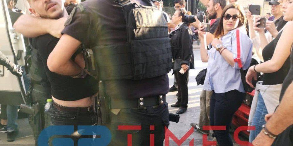 Νωρίτερα αστυνομικοί εντόπισαν τρεις νεαρούς και μια νεαρή που φορούσαν μπλούζες με τη λέξη “Υπέρ άνω όλων η Ελλάς” και τους προσήγαγαν ενώ πριν από λίγο οι ισχυρές αστυνομικές δυνάμεις που βρίσκονται στο σημείο προχώρησαν και σε νέες προσαγωγές πολιτών.