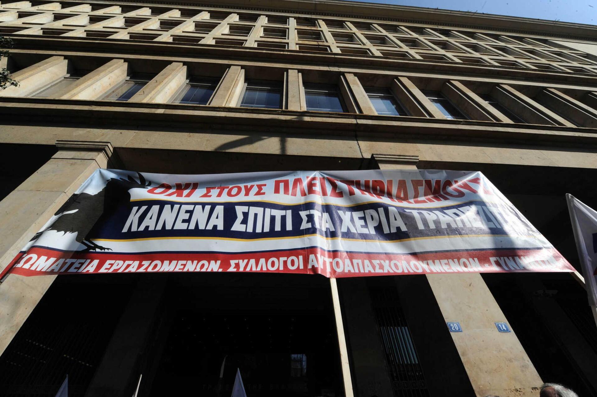 Στο Ειρηνοδικείο της Αθήνας είχαν προγραμματισθεί να βγουν στο σφυρί τρία διαμερίσματα, και τα τρία είναι πρώτες κατοικίες. Και εκεί συγκεντρώθηκε κόσμος με αποτέλεσμα η διαδικασία να αναβληθεί.