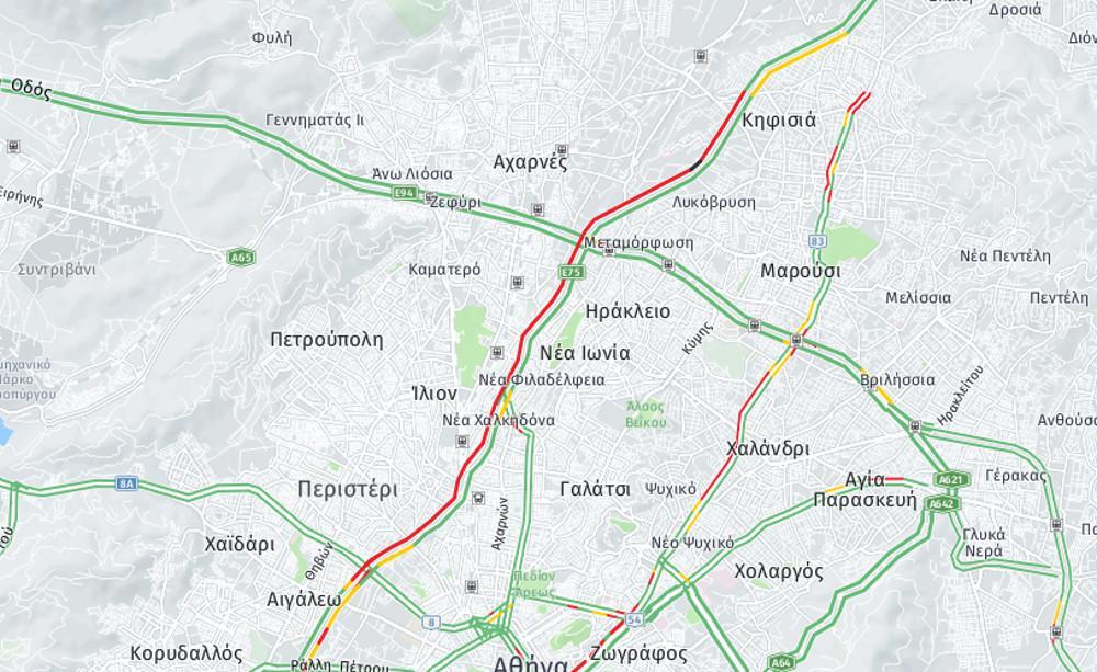 Μποτιλιάρισμα καταγράφεται και στα δύο ρεύματα της Κηφισίας, στη Βασ. Σοφίας, τη Βασ. Κωνσταντίνου, την Μεσογείων και την Κατεχάκη.