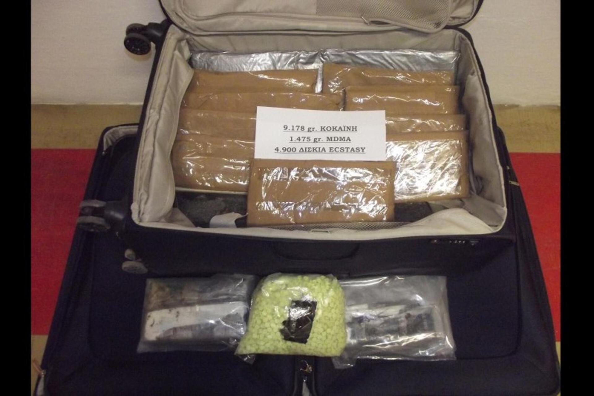Συγκεκριμένα, μετά από αστυνομική επιχείρηση που πραγματοποιήθηκε τη Δευτέρα (03/10) εντοπίσθηκαν σε δωμάτιο τουριστικού καταλύματος, όπου διέμενε ο 45χρονος, ένας ταξιδιωτικός σάκος και δύο βαλίτσες ειδικά τροποποιημένες, με διπλούς πάτους, που περιείχαν κοκαΐνη βάρους (4.508) γραμμαρίων, μεθαμφεταμίνη βάρους (1.475) γραμμαρίων και (4.900) χάπια ecstasy.