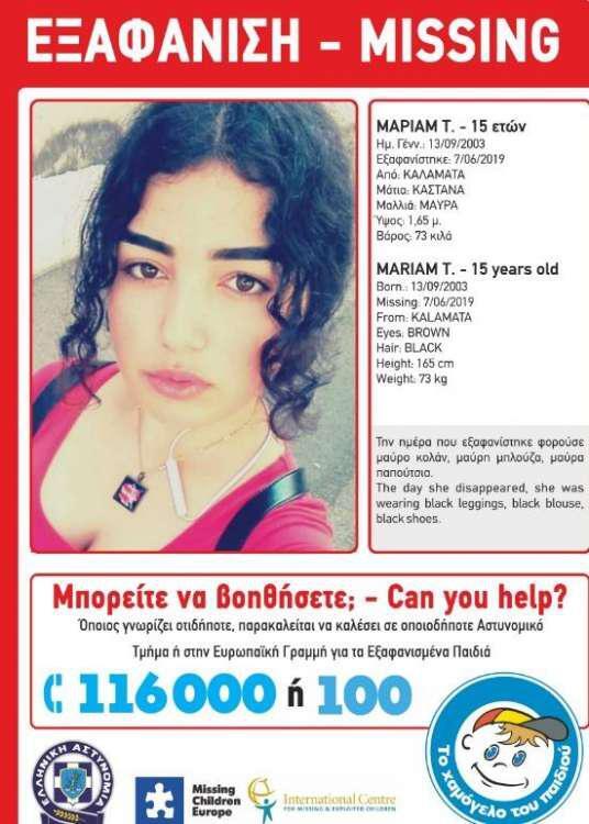 Όπως αναφέρει το «Χαμόγελο του Παιδιού» στο δελτίο Τύπου: «Στις 7/6/2019, απογευματινές ώρες, εξαφανίστηκε από το σπίτι της, η Μαριάμ Τ. 15 ετών. Η Μαριάμ Τ. έχει ύψος 1,65 μ., ζυγίζει 73 κιλά, έχει μαύρα μαλλιά και καστανά μάτια. Φορούσε μαύρο κολάν, μαύρη μπλούζα και μαύρα παπούτσια».