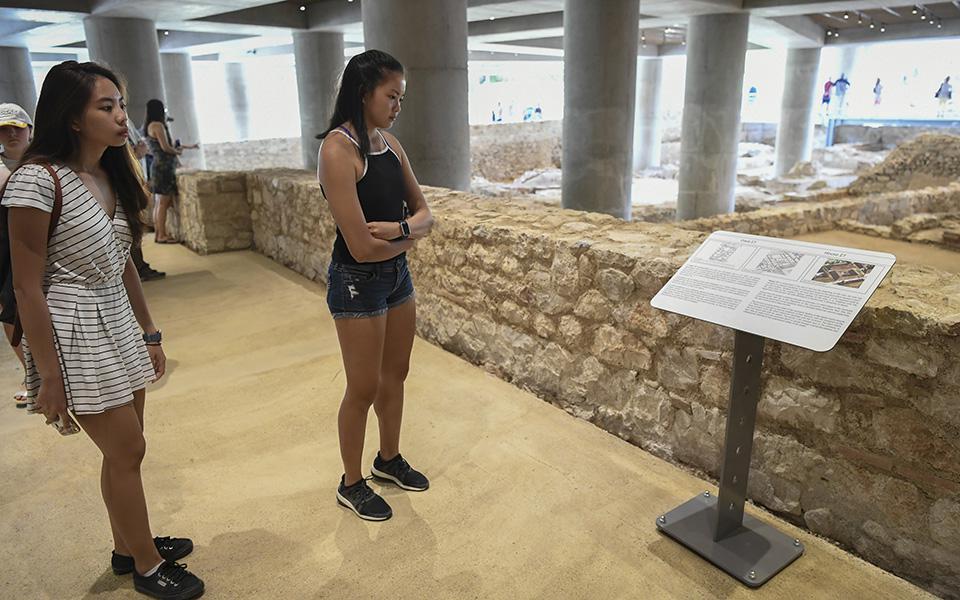 Ενδιαφέρον εποπτικό υλικό που έχει τοποθετηθεί σε καίρια σημεία της ανασκαμμένης έκτασης βοηθά στην κατανόηση των κυριότερων κτιρίων και υποδομών της, όπως σπίτια, εργαστήρια, λουτρά, δρόμοι και δίκτυο απορροής υδάτων, τα οποία ανήκουν σε αλλεπάλληλες φάσεις, με κυρίαρχη αυτή της ύστερης αρχαιότητας. Περίπου σε έναν χρόνο από τώρα θα προστεθούν μια μεγάλη προθήκη με περισσότερα από 1.000 αντιπροσωπευτικά κινητά ευρήματα, μια γλυπτοθήκη με σπουδαία γλυπτά, καθώς και μια σειρά από αρχιτεκτονικά μέλη. Τα παραπάνω θα προσδώσουν ακόμα μεγαλύτερο ενδιαφέρον στην περιήγηση της αρχαίας γειτονιάς που ξεδιπλώνει με τον πιο ιδιαίτερο τρόπο πτυχές της καθημερινής ζωής των κατοίκων της.
