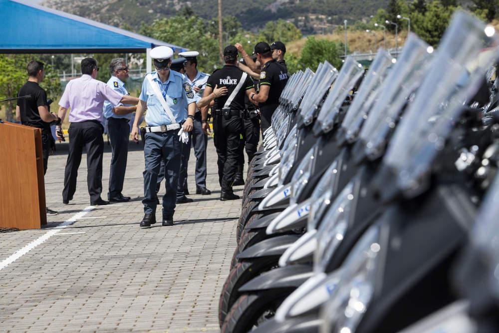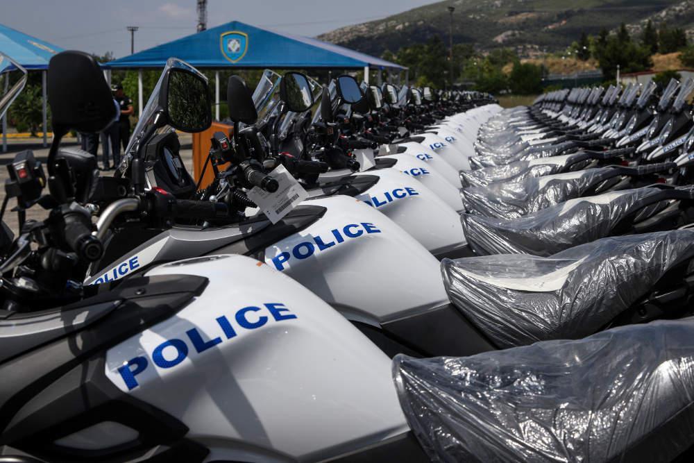 Πρόκειται για 107 μοτοσικλέτες και έξι αυτοκίνητα, που αποκτήθηκαν μέσω συγχρηματοδότησης του ΕΣΠΑ 2014 – 2020 και του Ευρωπαϊκού Ταμείου Εσωτερικής Ασφάλειας, καθώς και λεωφορείο που αποτελεί δωρεά της εταιρείας «ΜΥΤΙΛΗΝΑΙΟΣ Α.Ε.».