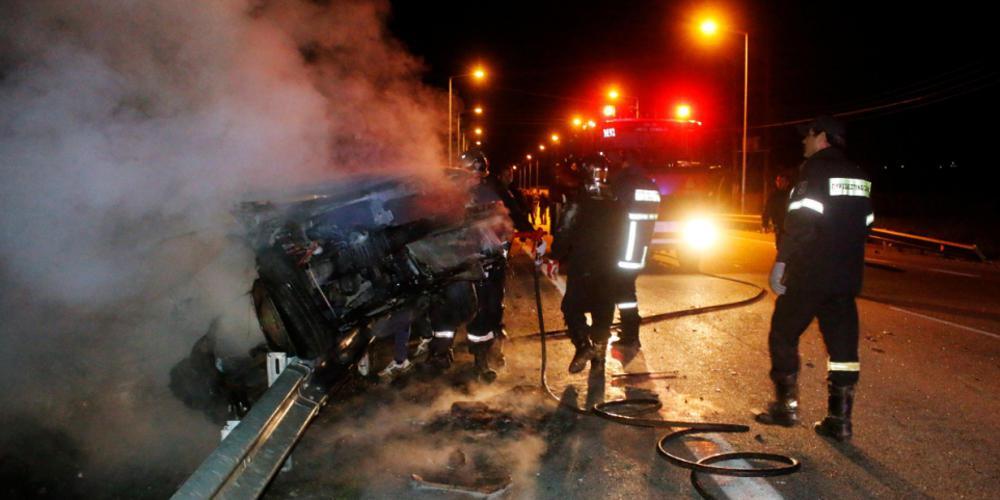 Οι εννέα πυροσβέστες που μετέβησαν στο σημείο με τρία οχήματα, χρειάστηκαν δύο ώρες για να απεγκλωβίσουν το ένα άτομο από τις πίσω θέσεις του αυτοκινήτου.