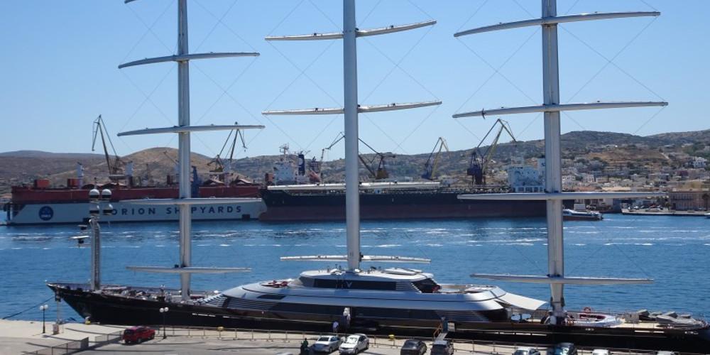 Το γνωστό MALTESE FALCON yacht, έδεσε στο λιμάνι της Ερμούπολης αναφέρει το cyclades24.gr, προερχόμενο από την Ψαρού της Μυκόνου και όπως ήταν αναμενόμενο έκλεψε τις εντυπώσεις. Το «Γεράκι της Μάλτας» (Maltese Falcon), μήκους 88 μέτρων, βρίσκεται εδώ και λίγη ώρα στη Σύρο. Με το επιβλητικό σκαρί του, με τα τρία κατάρτια που αγγίζουν το ύψος ενός 20όροφου κτιρίου, προκαλεί δέος.
