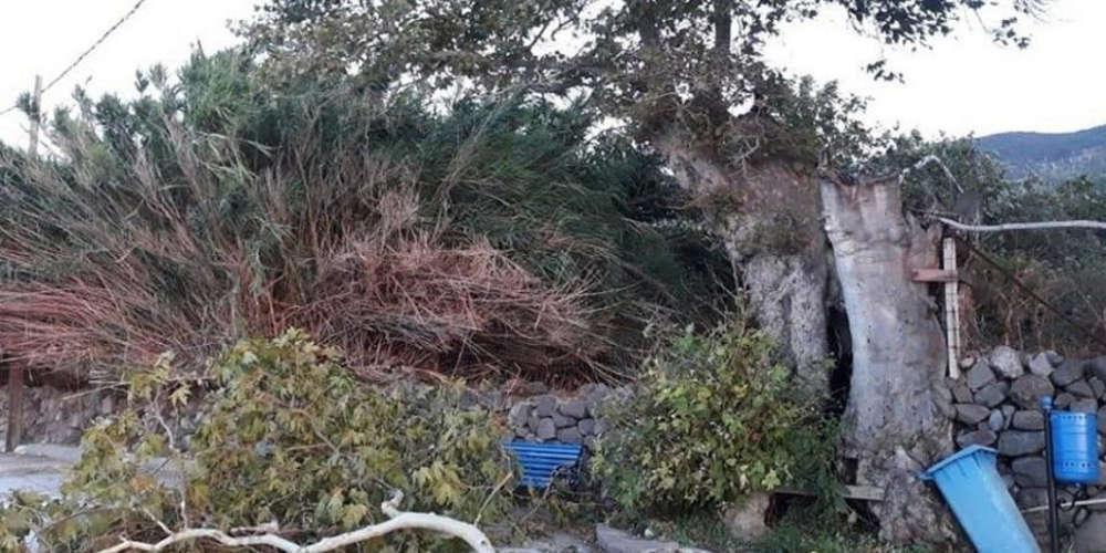 Μεγάλο μέρος του υπεραιωνόβιου δένδρου έσπασε, με τον κορμό του να σχίζεται στη μέση και να ξεριζώνεται.