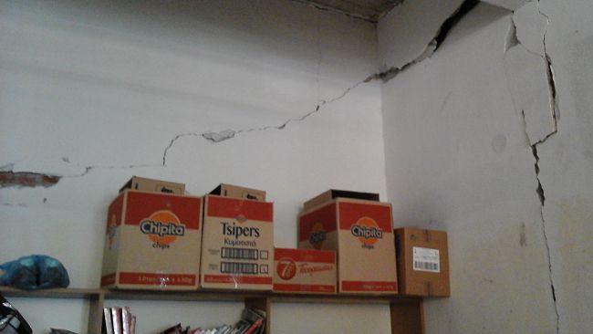 Σε ορισμένα σπίτια όμως, όπως και σε ένα παντοπωλείο στο Καλπάκι, τα σημάδια του σεισμού είναι αποτυπωμένα