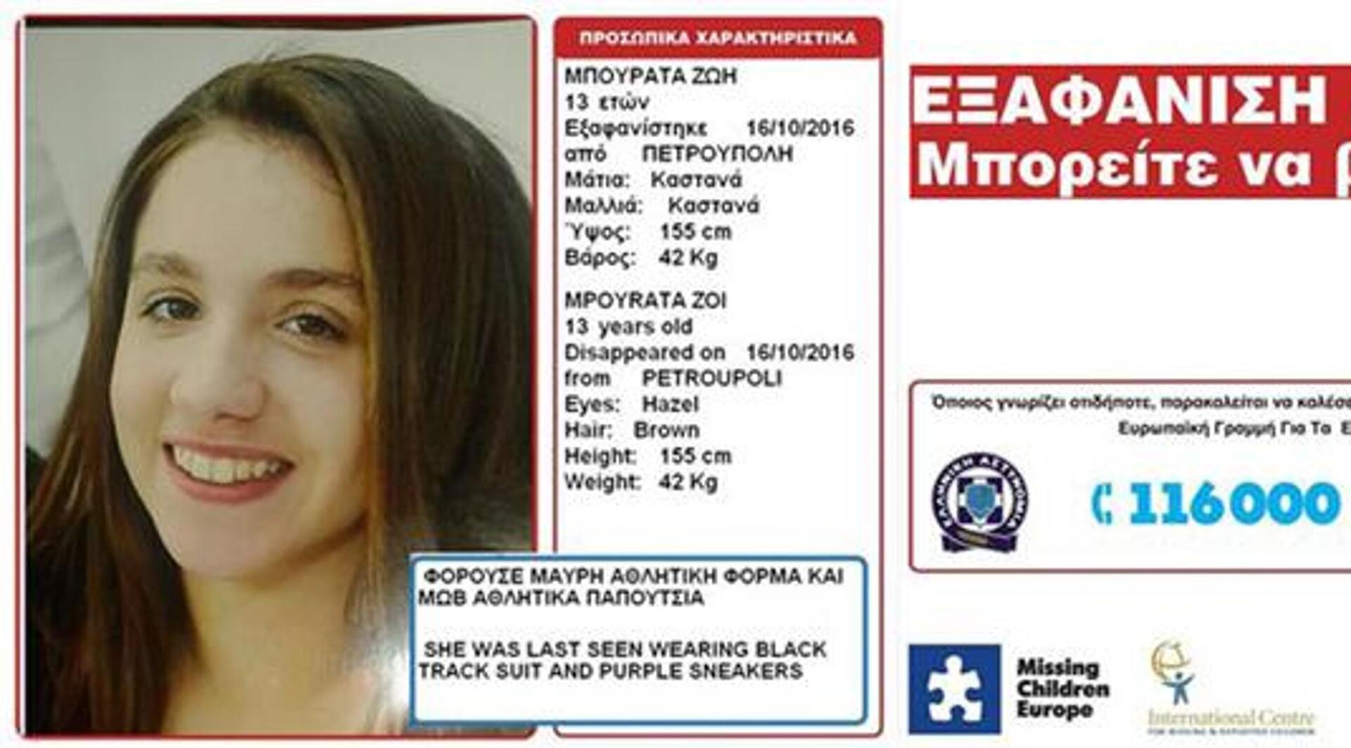 Όπως αναφέρει με ανακοίνωση του το «Χαμόγελο του Παιδιού», το ανήλικο κορίτσι φορούσε μαύρη αθλητική φόρμα και μώβ αθλητικά παπούτσια. Έχει καστανά μαλλιά, καστανά μάτια, ύψος 155 εκ. και βάρος 42 κιλά.