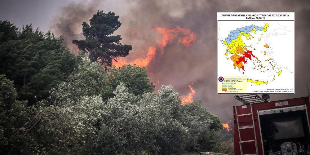 Ταυτόχρονα, πολύ υψηλός κίνδυνος πυρκαγιάς (κατηγορία κινδύνου 4) για τις εξής περιοχές:
