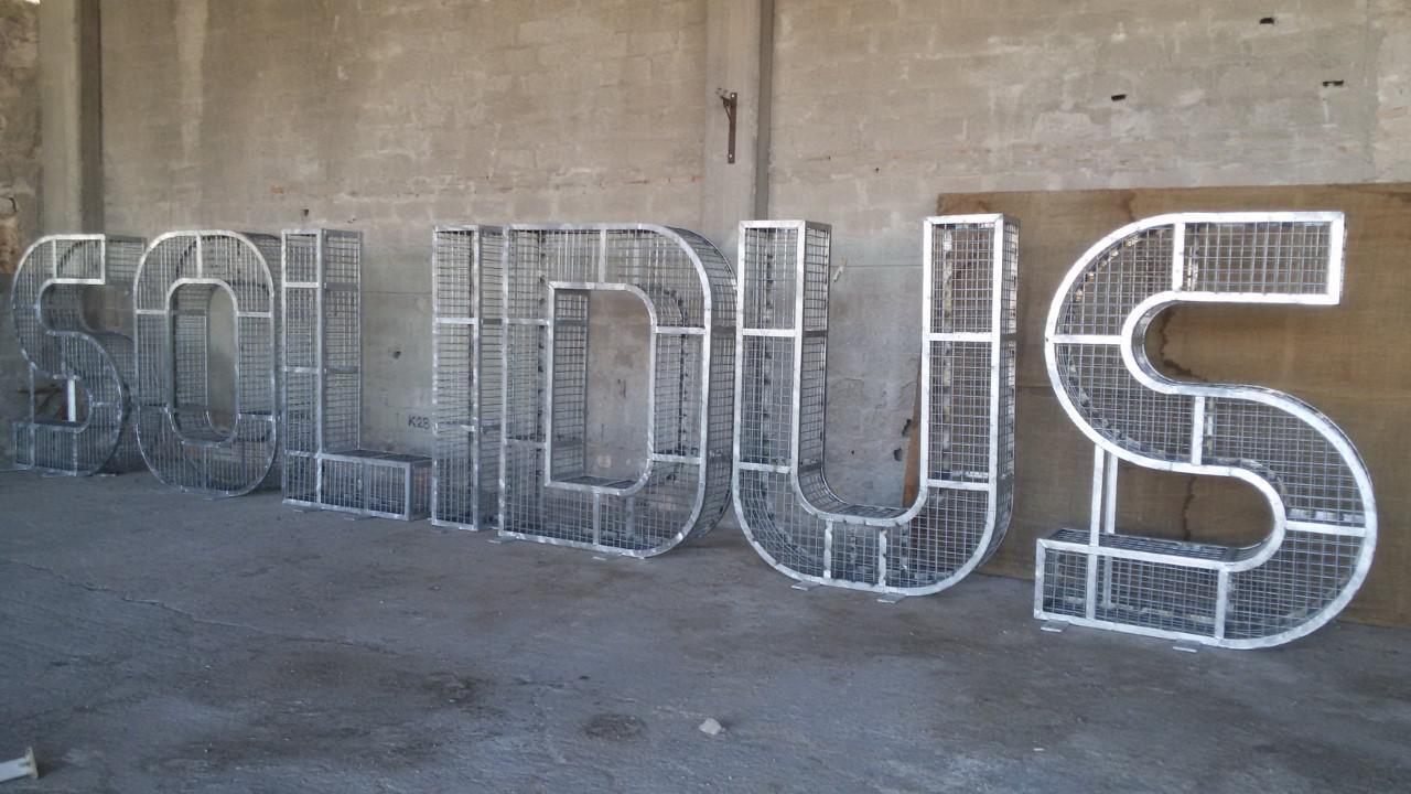 Μια σιδηροκατασκευή που σχηματίζει τη λέξη solidus, διαστάσεων 2 μ. Χ 11 μ., θα γεμίσει με πέτρες και θα ζυγίζει έτσι 8.000 κιλά.