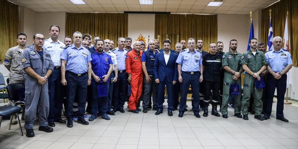 Το «παρών» στη βράβευση έδωσαν ο αρχηγός του Πυροσβεστικού Σώματος αντιστράτηγος Βασίλειος Ματθαιόπουλος, ο επικεφαλής της Διοίκησης Αεροπορικής Υποστήριξης (ΔΑΥ), υποπτέραρχος Αθανάσιος Σαββόπουλος, ο διοικητής ΕΣΚΕ υποστράτηγος Ιάκωβος Κλεφτοσπύρος, ο διοικητής της Υπηρεσίας Εναερίων Μέσων Πυροσβεστικού Σώματος (ΥΕΜΠΣ) πύραρχος (ΧΑ) Γεώργιος Πορτοζούδης, καθώς και στελέχη της Πολιτικής Προστασίας, του Πυροσβεστικού Σώματος και της Πολεμικής Αεροπορίας.