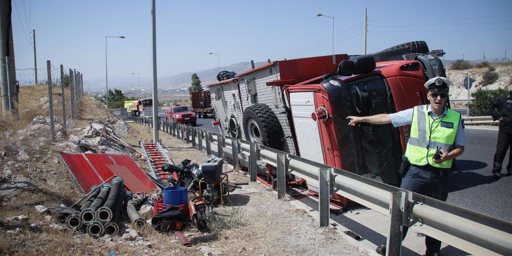 Το όχημα ανετράπη για άγνωστους μέχρι στιγμής λόγους, ενώ βρισκόταν καθ’ οδόν για την κατάσβεση της πυρκαγιάς, στην είσοδο της Αττικής Οδού από Ασπρόπυργο για Άνω Λιόσια και Σκαραμαγκά.