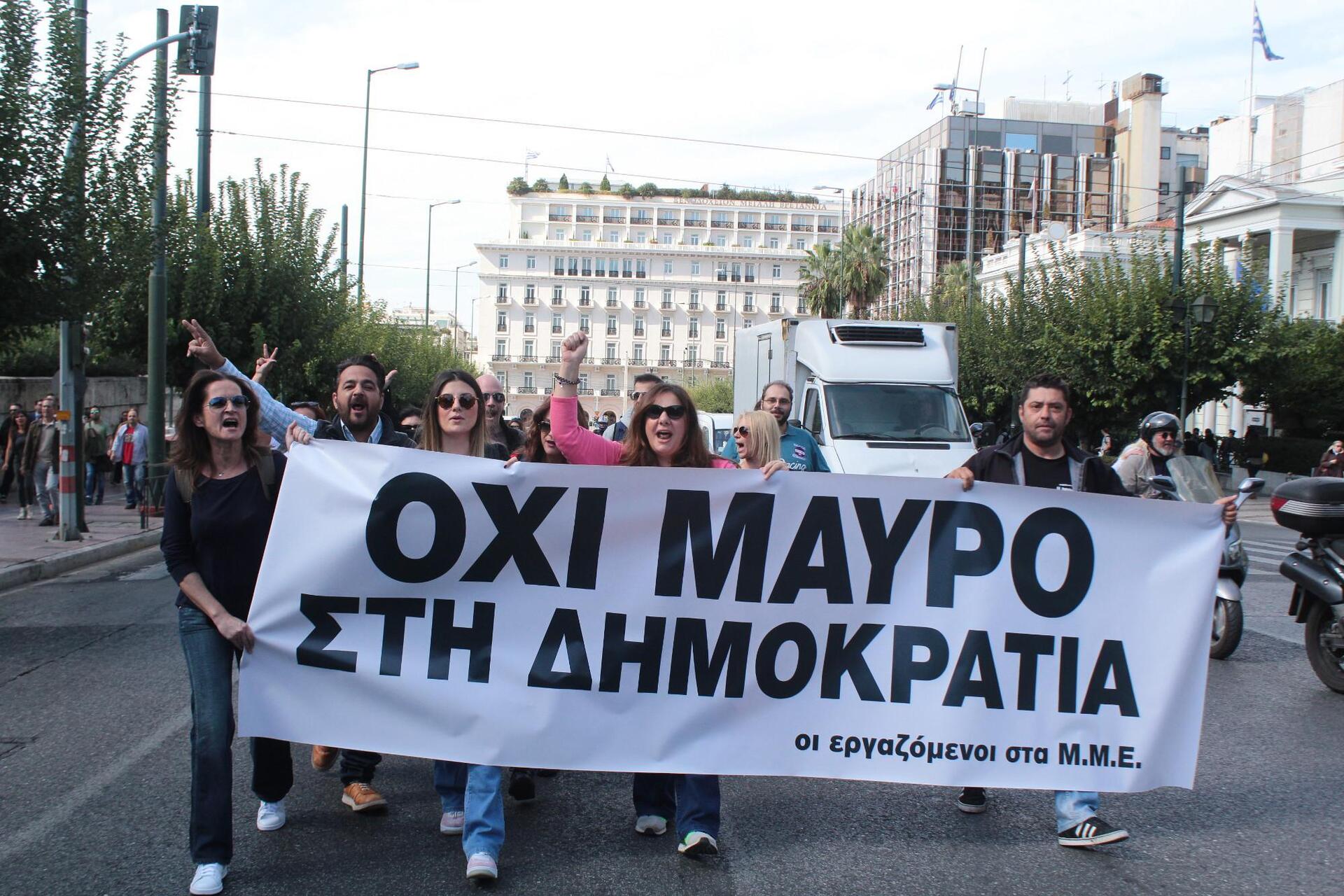 Συγκεκριμένα έχουν στήσει κρεμάλα στην κολώνα με τα φανάρια ακριβώς έξω από την είσοδο της Βουλής των Ελλήνων δημοσιογράφοι και τεχνικοί εκφράζοντας με αυτό τον τρόπο την αντίθεση τους στο μαύρο που προωθεί η κυβέρνηση στους ιδιωτικούς τηλεοπτικούς σταθμούς.