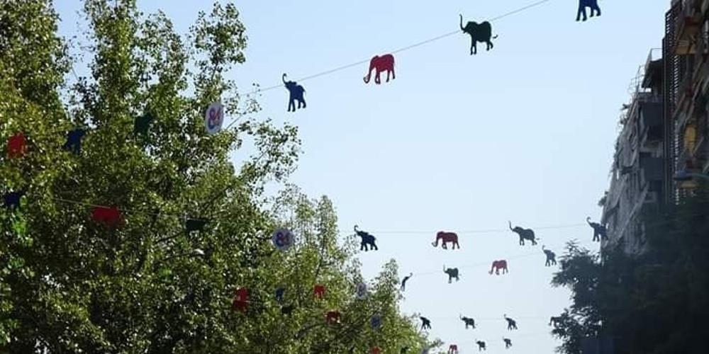 «’Ηδη κρεμάστηκαν περισσότερα από 300 ελεφαντάκια στις περιοχές των οδών Αγγελάκη, Τσιμισκή, 3ης Σεπτεμβρίου και Εγνατία και στις πλατείες ΧΑΝΘ και Σιντριβανίου, ενώ στον πεζόδρομο της Πλατείας Αριστοτέλους θα αναρτηθούν ινδικά “σκουλαρίκια” (λάβαρα). Συνολικά τα ελεφαντάκια αναμένουμε να φτάσουν τα 500. Ο τρόπος δε, με τον οποίο έχουν τοποθετηθεί δεν είναι τυχαίος.