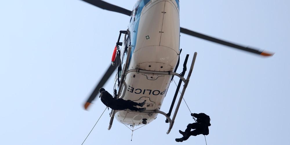Την παράσταση έκλεψε για ακόμη μια φορά η εντυπωσιακή επίδειξη των ανδρών της Ειδικής Κατασταλτικής Αντιτρομοκρατικής Μονάδας, οι οποίοι έκαναν κατάβαση από ελικόπτερο της ΕΛ.ΑΣ. και καταχειροκροτήθηκαν από το κοινό που είχε κατακλύσει τον υπαίθριο χώρο που βρίσκεται κοντά στη νότια πύλη της Έκθεσης.