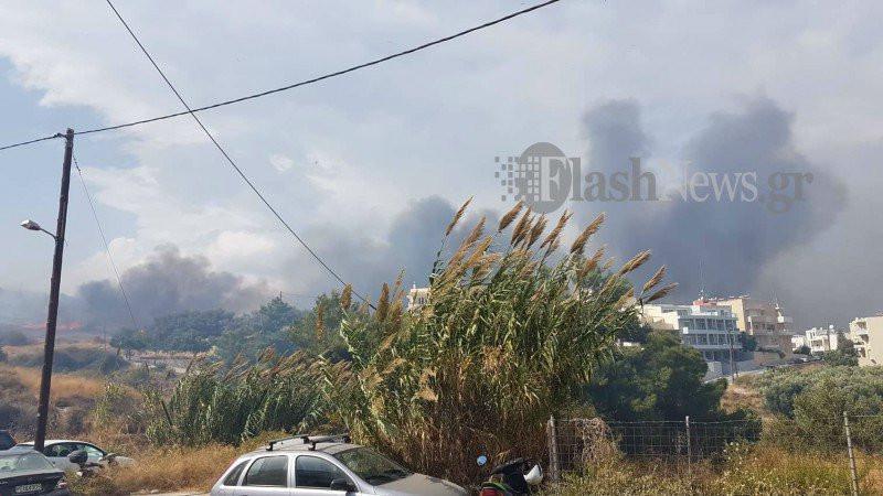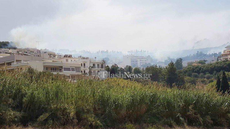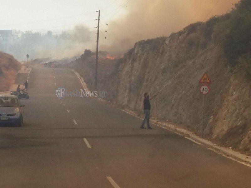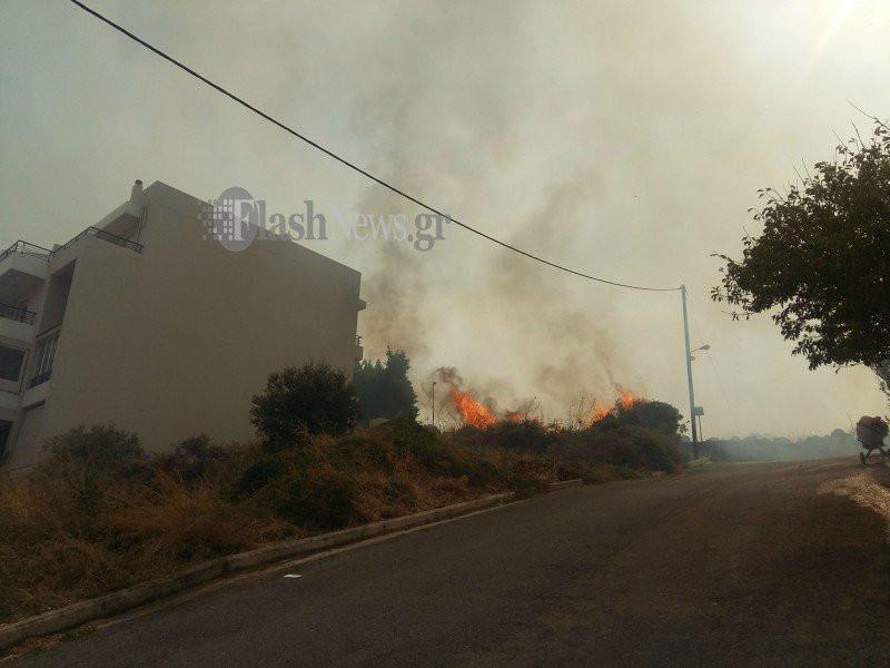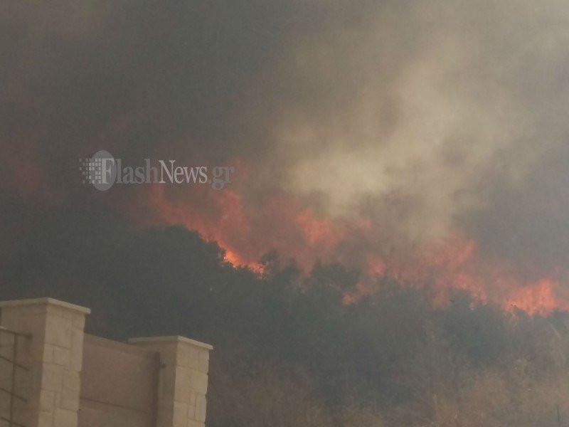Η πυρκαγιά μαίνεται και οι άνεμοι είναι ισχυροί, ενώ κάτοικοι της περιοχής βρέχουν τις αυλές και τα σπίτια τους.