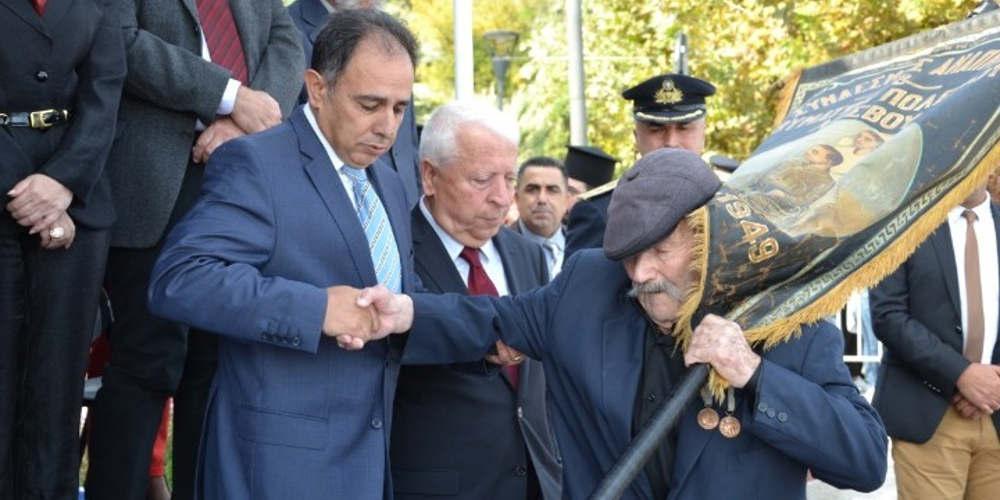 Τα τελευταία χρόνια σαν φτάσει μπροστά στην εξέδρα των επισήμων ο δήμαρχος τον οδηγεί πάνω δίπλα στους επισήμους. Σήμερα το ίδιο έγινε από το δήμαρχο Μυτιλήνης Στρατή Κύτελη και τον περιφερειάρχη βορείου Αιγαίου Κώστα Μουτζούρη. «Καλά ήταν;» τον ρωτάμε. Γελά… «Του χρόνου άμα έχω φύγει να πάρετε δυο νέοι το λάβαρο και να το περάσετε στην προκυμαία. Να ησυχάσουν οι ψυχές όλων. Άντε γεια τώρα. Και να αντέχετε. Όλα τα μπορούμε…».