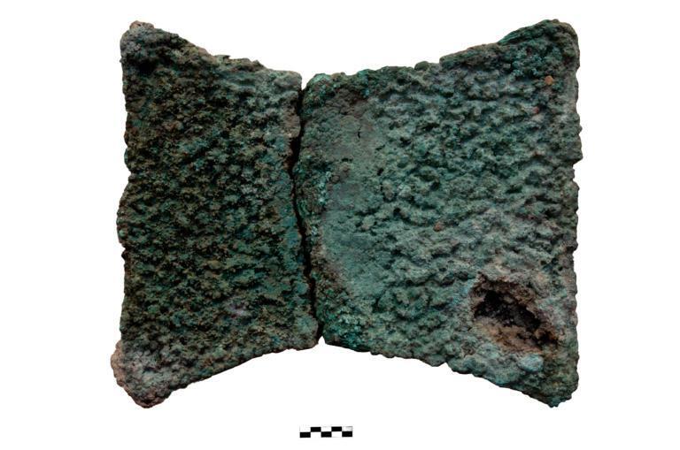 Παρά την απλή αρχιτεκτονική τους, δύο δωμάτια περιείχαν ”θησαυρούς” από μέταλλα, γυαλί και ημιπολύτιμους λίθους. Ο πρώτος θησαυρός βρέθηκε το 2018 σε δωμάτιο που πιθανότατα χρησίμευε ως αποθηκευτικός χώρος. Η απόθεση περιείχε δύο τμήματα από χάλκινα τάλαντα, μία μάζα από σκωρίες και κοσμήματα: Ένα χρυσό δαχτυλίδι, ένα χρυσό βραχιόλι, 26 χρυσές χάντρες (δισκοειδείς, σφαιρικές και σε σχήμα πάπυρου), μία αργυρή χάντρα, 5 χάλκινες, σφενδόνη χάλκινου δαχτυλιδιού. Μαζί με αυτά ήταν μεγάλος αριθμός από γυάλινες χάντρες διαφόρων σχημάτων, (39 σφαιρικές και 25 σε σχήμα πάπυρου), 4 από το λεγόμενο αιγυπτιακό μπλε, 20 από κορνεόλιο λίθο, 1 από αμέθυστο, 10 από λάπις, μία σφραγίδα από αχάτη με παράσταση πλοίου που η πρύμνη του έχει τη μορφή κεφαλής ζώου και ένα λίθινο περίαπτο με μορφή πιθήκου».