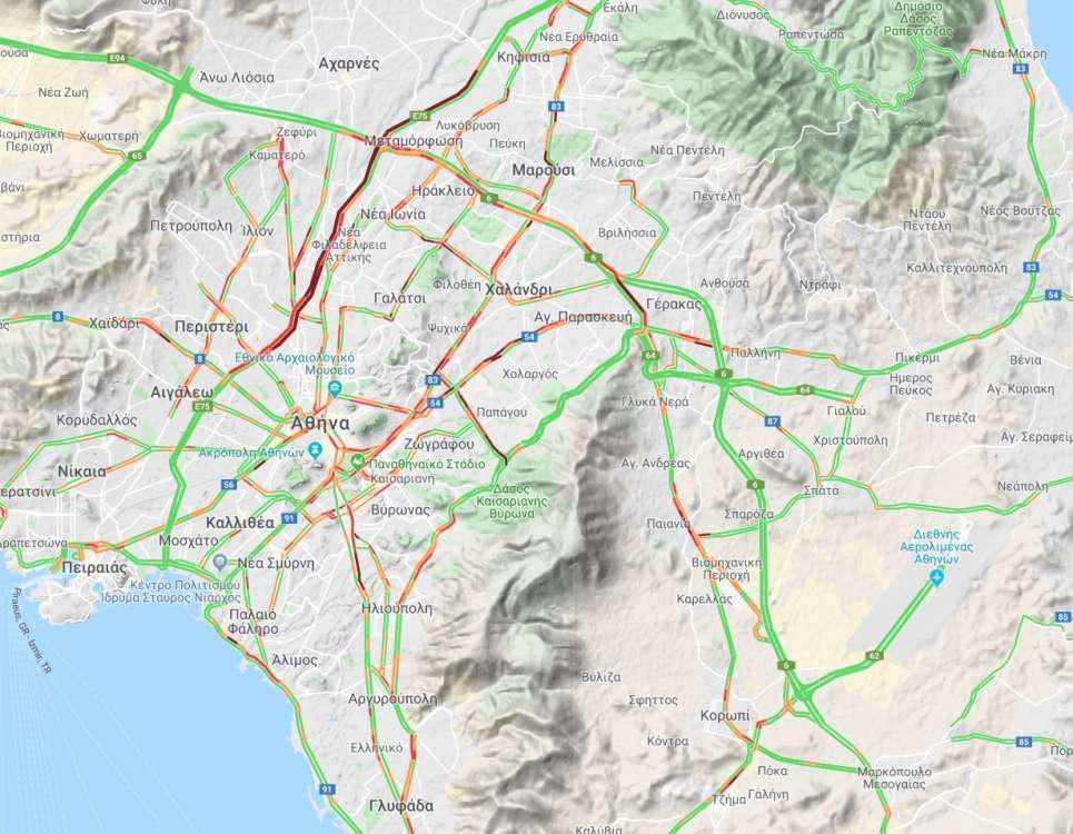 Στην Αττική οδό καθυστερήσεις 5΄-10΄, από Μεταμόρφωση έως Ηράκλειο, προς Αεροδρόμιο, 5΄-10΄, από Πλακεντίας έως Κηφισίας, προς Ελευσίνα, ενώ παραμένουν οι καθυστερήσεις από Αγία Παρασκευή έως Κηφισίας στην Δυτική Περιφερειακή Υμηττού καθώς και στη έξοδο για Λαμία.