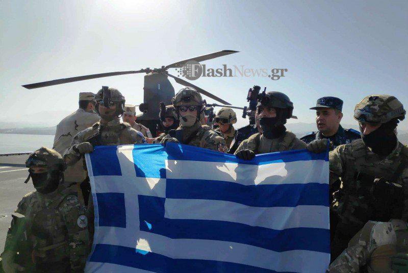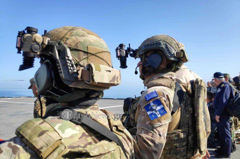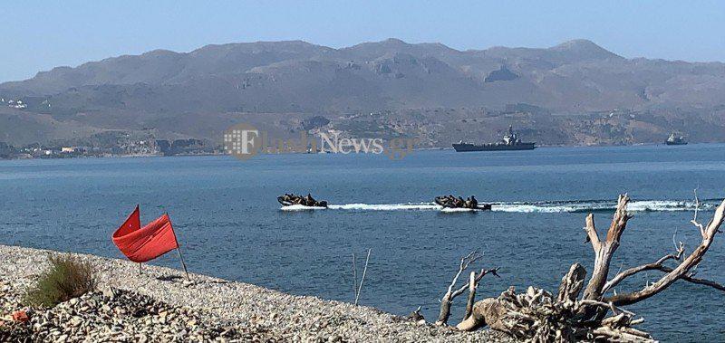 Με ελικόπτερα και αποβατικά σκάφη οι ειδικές δυνάμεις ξεκίνησαν την απόβαση από το αιγυπτιακό ελικοπτεροφόρο με την υποστήριξη των φρεγατών και άλλων πολεμικών πλοίων τα οποία έπλεαν στον κόλπο των Χανίων.